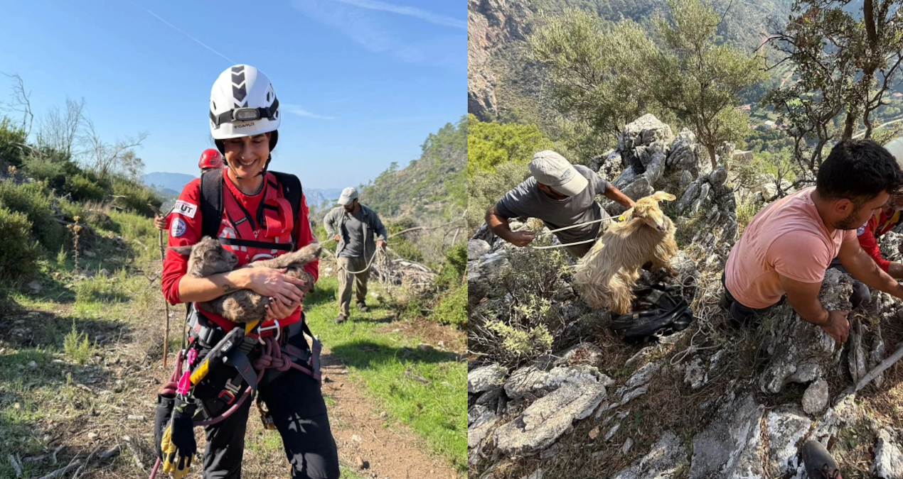 Muğla’nın Fethiye ilçesine bağlı Kargı Mahallesi’nde hayvancılık yapan Süleyman Söğüt’e ait 4 keçi kayalık ve uçurumluk bölgede mahsur kaldı. Söğüt kendi imkanları ile kurtaramadığı keçileri için yardım istedi.