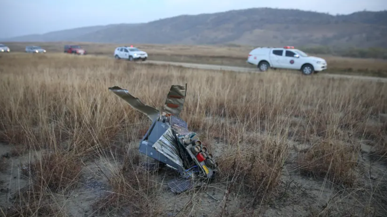 Dört motorlu uçaktan dumanlar yayılmaya başladı ve ana gövde dönerek hızla düşmeye başladı. Kopan ilk parça başka bölgeye düşerken, uçağın havada duman saçarak döndüğü ve bir süre sonra yere çarptığı görülüyor. Bölgeden gelen ilk fotoğraflardan düşen uçağın tamamen enkaza döndüğü anlaşıldı.